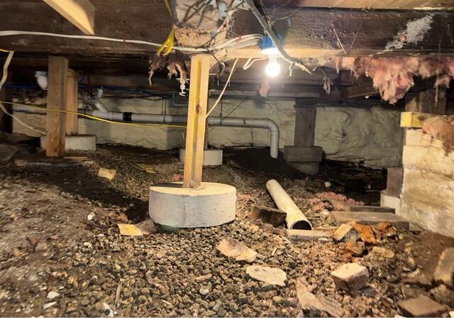 This Vassalboro, ME crawl space had a dirt floor and was often damp, and the owners were ready to explore encapsulating the space. We installed our two-step encapsulation process, including a layer of drainage matting to control the groundwater, and our CleanSpace vapor barrier to seal out moisture. Crawl space encapsulation protects the structure of your home, as well as prevents odors and allergens like mold spores from making their way up into your home.