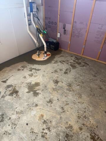 Next, to eliminate the developing mold problem entirely, a SaniDry Sedona dehumidifier was installed on the basement floor. This device will pull in the surrounding damp air and separate the moisture from it. The dried air is then circulated back into the basement where it will cycle more damp air back to the SaniDry, continuing the process. Once the atmosphere within this basement is free of moisture, any mold attempting to grow will no longer be able to sustain itself. Finally, the moisture collected through the SaniDry is pumped from the home through a PVC discharge line.