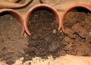Different soil types are affected by moisture in different ways. Each of these three soils reacts to water differently: