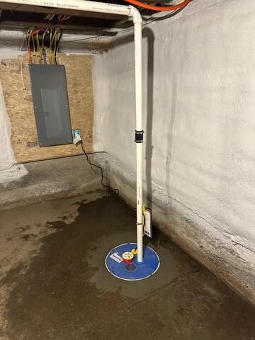 A homeowner in Randolph was in need of a sump system. They had a drain, but they were tired of cleaning it regularly, and wanted an automatic system. After hearing about TC Hafford from a satisfied customer, they got in contact with us. We started by installing a SuperSump sump pump. This will take any water in the basement and push it up and out through a PVC pipe. Once outside the house, the water passes through a special pipe called an IceGuard. This IceGuard will allow water to escape the pipe should the lower end become blocked by ice or other forms of debris. Now this homeowner maintains a dry basement with much less upkeep.